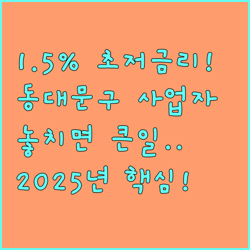 동대문구 중소기업육성기금 융자는 연 1.5% 저금리, 1년 거치 4년 분할상환 (총 5년) 조건으로 소상공인에게 최대 3천만원, 중소기업에게 최대 1억원의 자금을 제공하는 중요한 금융 기회입니다.